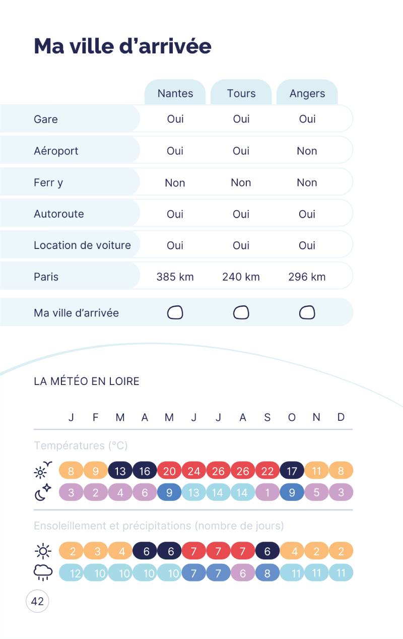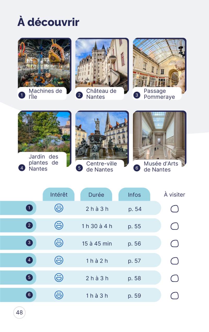 - Une liste claire par ville des choses à voir ou à faire lors de votre séjour