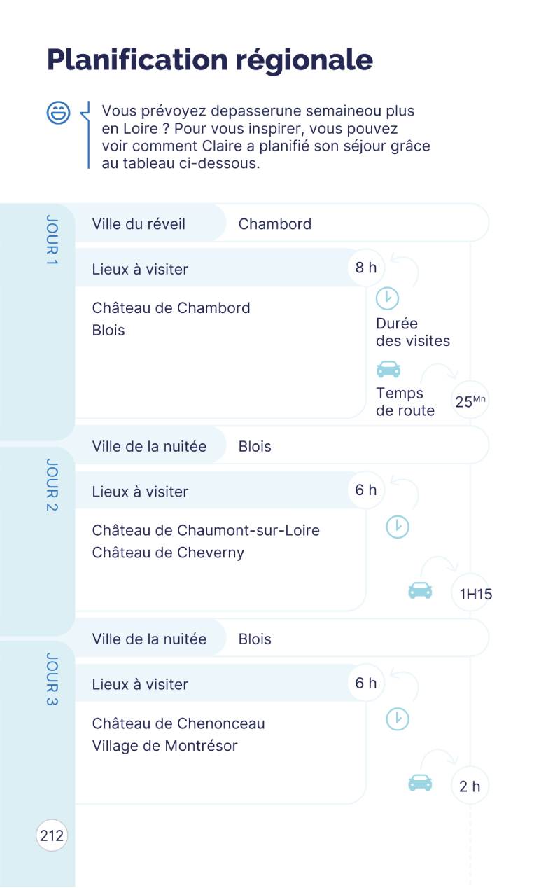 - Des pages à personnaliser pour concevoir votre itinéraire idéal à travers châteaux, villages et paysages de la vallée.
